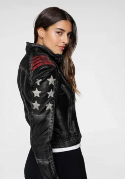 KangaROOS Bikerjacke mit vielen Ösen, Zippern und aufgenähten Sternen Black-used, Blue-used