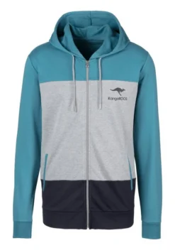 KangaROOS Kapuzensweatjacke im Colourblock Design Grau-meliert-weiß-navy, Petrol-grau-meliert-navy