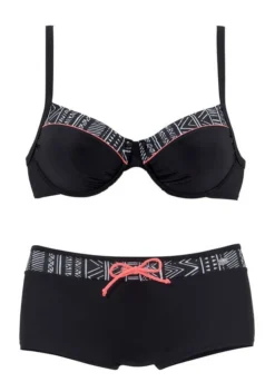 Bringt coole Vibes mit sich: der feine Bügel-Bikini von Kangaroos! Aufregend präsentiert sich das kontrastreiche Ethnomuster auf Ober- und Unterteil des fantastischen Bikinis. Träger des Tops und Bündchen des Slips bestechen mit schlichtem Design. Das Bikinitop kann superleicht im Nacken gebunden und im Rücken geschlossen werden. Das hippe Höschen zeigt sich mit normaler Leibhöhe und klassischem Beinausschnitt. Die angenehm elastische Materialmischung versetzt alle Frauen in entspannte Urlaubsstimmung. Sorgt für Gute-Laune-Feeling: der Bügel-Bikini von Kangaroos mit Ethnomuster. Obermaterial: 80% Polyamid, 20% Elasthan (LYCRA®). Futter: 100% Polyester.