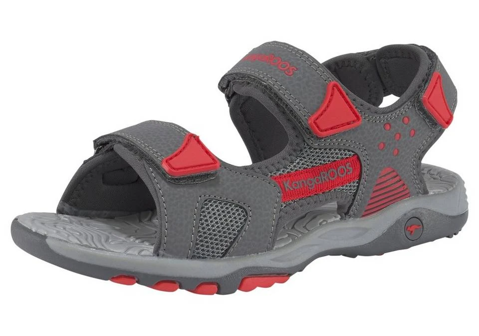Jetzt geht es auf große Entdeckungstour – in den leichten Kindersandalen »Celtic« von Kangaroos! Das pflegeleichte Obermaterial aus Synthetik und Textil ist perfekt für Wege abseits ausgetretener Pfade und auch die strapazierfähige Gummilaufsohle macht einiges mit. Die Klettverschlüsse sorgen dabei dafür, dass die Sandale fest am Fuß sitzt, während das vorgeformte Fußbett ein angenehmes Tragegefühl verspricht. Dezente Label- und Kontrastdetails versichern obendrein, dass auch der Style nicht zu kurz kommt. Für kleine Abenteurer: die Kindersandale »Celtic« von Kangaroos!